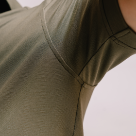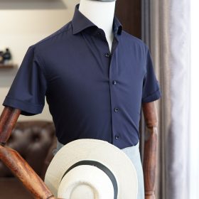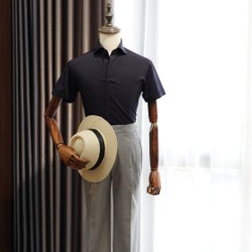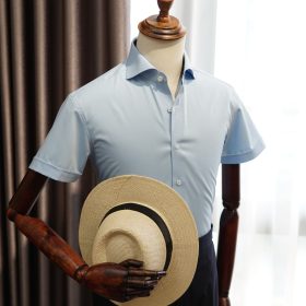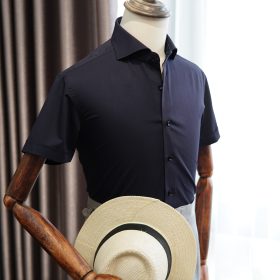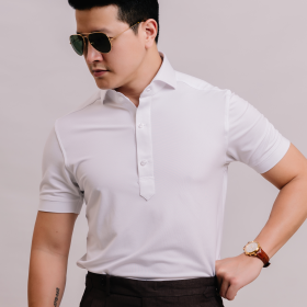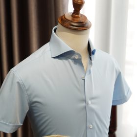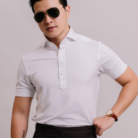 Sơ mi Bamboo cộc phối họa tiết cổ Cut away