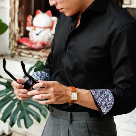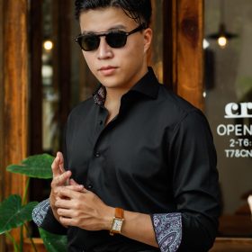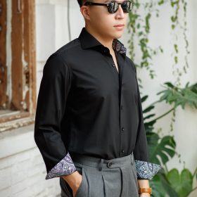 Sơ mi Bamboo phối họa tiết cổ Cut away