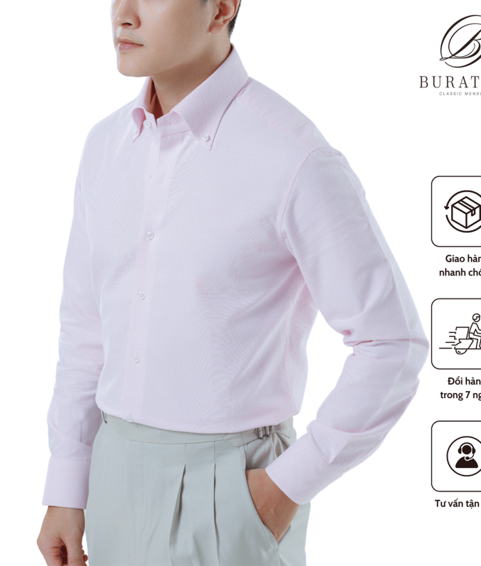 [LIMITED] Sơ mi cotton kẻ hồng cổ Button down version trải nghiệm sản phẩm premium