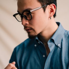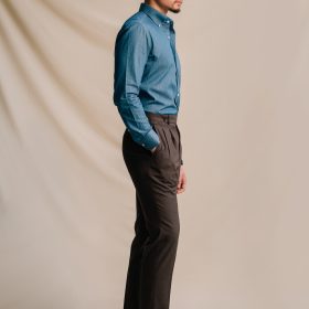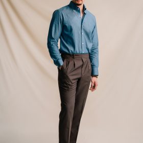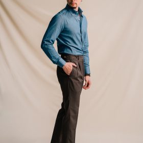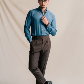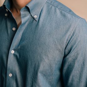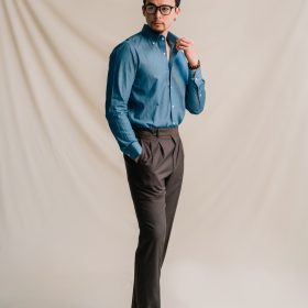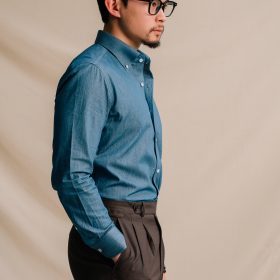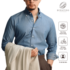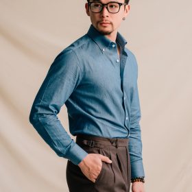 Sơ mi xanh cotton dệt chéo cổ Cut away