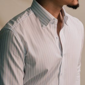 Sơ mi nam Trắng chất cotton dệt chéo cổ Cut away – BURATINO