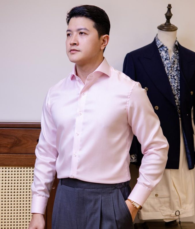 Review Sơ mi nam hồng chất cotton dệt chéo cổ Cut away – BURATINO