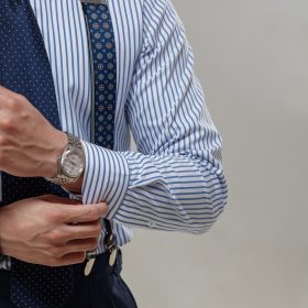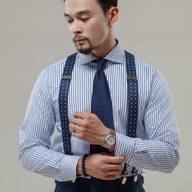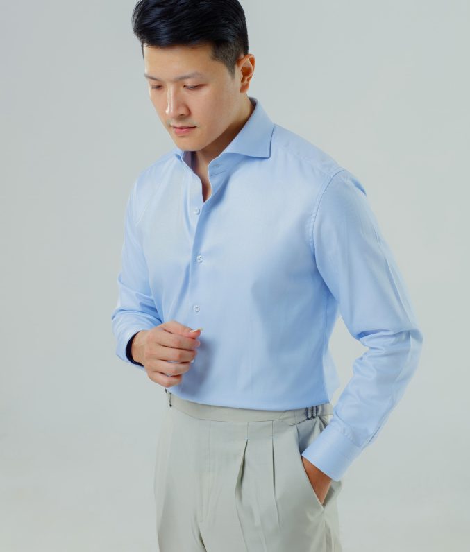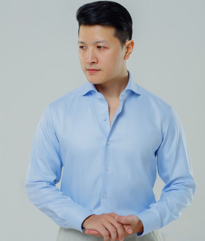 Review Sơ mi nam Xanh chất cotton dệt chéo cổ Cut away – BURATINO