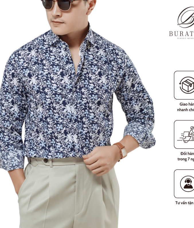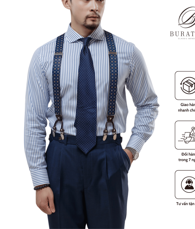 Review Sơ mi nam Xanh chất cotton dệt chéo cổ Cut away – BURATINO