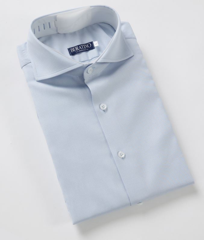 Review Sơ mi xanh cotton dệt chéo cổ Cut away